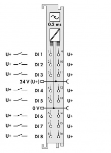 Он принимает двоичные управляющие сигналы от дискретных полевых устройств (напр., датчики, кодеры, выключатели, бесконтактные переключатели).