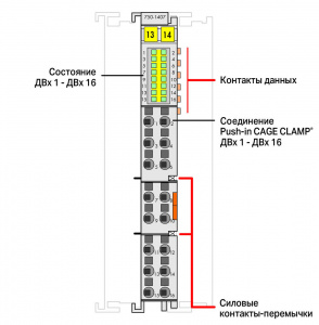 750-1407 16-канальный дискретный вход; тока; 3 мс; Включение по низкому уровню