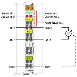 Аналоговый модуль ввода принимает дифференциальные сигналы со значениями ±10 В пост. тока.