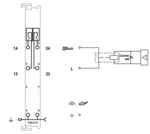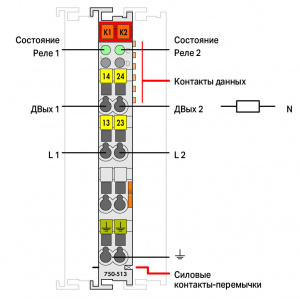Подключенная нагрузка переключается системой управления через дискретный выход (контакты реле).