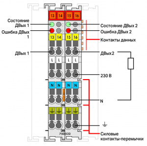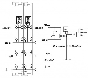 Дискретный модуль вывода управляет исполнительными механизмами через полупроводниковые выходы. Модуль шины принимает сигнал управления через соединитель полевой шины.