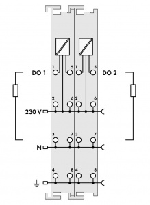 Каждый выход оснащен индивидуальной защитой от перегрузки, которая реализована с помощью ограничения внутренней температуры. В случае перегрузки модуль шины отключает выход. После того как выход остыл, модуль включает его обратно. В образе процесса о перегрузке сообщает бит ошибки.