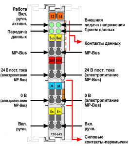 Модуль ввода-вывода 750?643 работает как управляющее устройство для шины MP?Bus (Multi Point Bus - многоточечная шина швейцарской компании Belimo) и позволяет интегрировать шину в сеть с шинной топологией более высокого уровня, такую как ETHERNET или LonWorks. MP?Bus служит для управления исполнительными механизмами системы отопления, вентиляции, кондиционирования, такими как заслонки, регулирующие клапаны, или объемом воздуха в системе кондиционирования с переменным расходом воздуха. Еще одна серия продуктов, использующих интерфейс MP?Bus - это система оконной вентиляции FLS от Belimo. Устройства, оснащенные интерфейсом MP?Bus, например, серия исполнительных механизмов Belimo MFT, могут взаимодействовать с устройством управления более высокого уровня через магистральную шину.