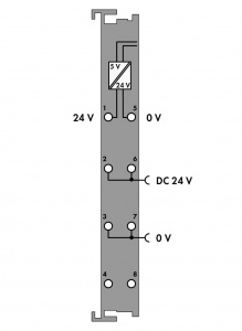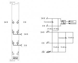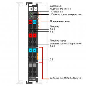 Модуль также подает питание полевого уровня к примыкающим модулям через силовые контакты-перемычки.