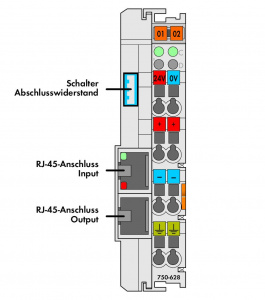 Соединительный модуль расширения внутренней шины данных 750-628 заменяет каплер/контроллер полевой шины в сборочном узле модуля ввода-вывода. Это встречная часть для концевого -модуля расширения 750-627. Соединительный кабель вставляется во входное гнездо RJ-45, обеспечивая логическое соединение с каплером/контроллером полевой шины через концевой -модуль расширения внутренней шины данных 750-627. Такое расширение не создает помех для работы каплер/контроллера полевой шины, все функции системы шинного модуля остаются без -изменений. Выходное гнездо RJ-45 позволяет выполнять дальнейшее расширение системы