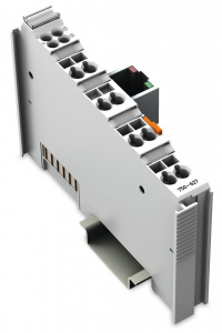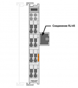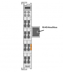 Концевой модуль расширения внутренней шины данных 750-627 защелкивается на несущий рельс в конце сборочного узла точно так же, как и стандартный концевой модуль 750-600. Комплектация сборочного узла завершается с помощью этого концевого -модуля, который позволяет использовать для подсоединения соединительного кабеля штекер RJ-45.