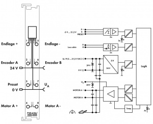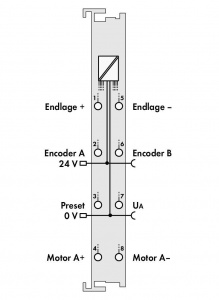 Три входа 24 В принимают сигналы концевых выключателей и предварительно заданный сигнал. Через интерфейс инкрементного шифратора выполняется оценка сигналов от датчика положения и определяется фактическое значение.