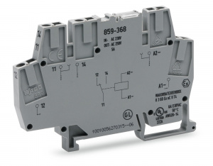—859-368 Релейный модуль; Номинальное входное напряжение: 230 В перем.тока; 1 перекл. контакт; с заданным порогом включения; Красный индикатор состояния; Ширина модуля: 6 мм