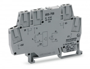 —859-758 Модуль оптопары; Номинальное входное напряжение: 24 В пост.тока; Диапазон выходного напряжения: 0 - 24 В пост.тока; Предельный длительный ток: 0,5 А; Частота: 10 кГц