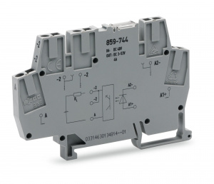 —859-744 Модуль оптопары; Диапазон выходного напряжения: 10 - 53 В пост.тока; Предельный длительный ток: 4 А; 2-проводное подключение; Ширина модуля: 6 мм