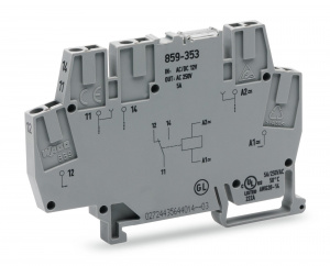 —859-353 Релейный модуль; Номинальное входное напряжение: 12 В перем./пост.тока; 1 перекл. контакт; Красный индикатор состояния; Ширина модуля: 6 мм