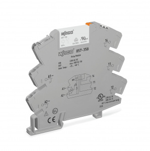 —857-358 Релейный модуль; Номинальное входное напряжение: 230 В перем./пост.тока; 1 перекл. контакт; Предельный длительный ток: 6 А; Желтый индикатор состояния; Ширина модуля: 6 мм