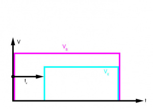 время задержки tV истекло: реле переключается в рабочее состояние
