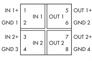 - Безопасная 3-канальная изоляция с тестовым напряжением EN 61140 в 2,5 кВ