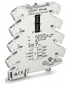 Универсальный разделительный усилитель 857-402 преобразует однополярные и биполярные стандартные сигналы и увеличивает, фильтрует и электрически изолирует аналоговые стандартные сигналы.