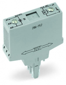 —286-752 Модуль оптопары; Номинальное входное напряжение: 24 В пост.тока; Диапазон выходного напряжения: 20 - 30 В пост.тока; Предельный длительный ток: 0,5 А; 3-проводное соединение/сторона высокого напряжения; Частота: 25 кГц; Красный индикатор состояния