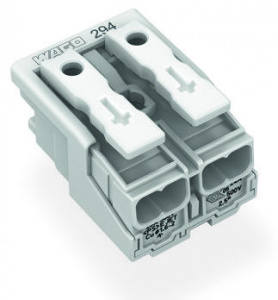 294-4002 Соединитель для светильников; нажимная кнопка, внешняя; без заземляющего контакта; 2-пол.; Стор. свет.: для одножильных проводников; Инст. стор.: для всех типов проводников; макс. 2,5 мм2; Темп. окруж. среды: макс. 85 °C (T85)