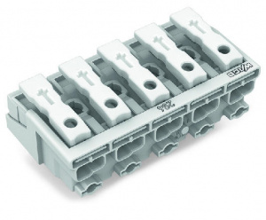 294-4005 Соединитель для светильников; нажимная кнопка, внешняя; без заземляющего контакта; 5-пол.; Стор. свет.: для одножильных проводников; Инст. стор.: для всех типов проводников; макс. 2,5 мм2; Темп. окруж. среды: макс. 85 °C (T85)