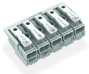 —294-4075 Соединитель для светильников; нажимная кнопка, внешняя; без заземляющего контакта; 5-пол.; Стор. свет.: для одножильных проводников; Инст. стор.: для всех типов проводников; макс. 2,5 мм2; Темп. окруж. среды: макс. 85 °C (T85)