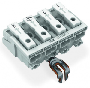 294-4214 Соединитель для светильников; нажимная кнопка, внешняя; с защелкивающимся заземляющим контактом; 4-пол.; Стор. свет.: для одножильных проводников; Инст. стор.: для всех типов проводников; макс. 2,5 мм2; Темп. окруж. среды: макс. 85 °C (T85)