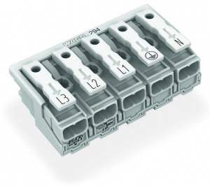 —294-5015 Соединитель для светильников; нажимная кнопка, внешняя; без заземляющего контакта; L3-L2-L1-PE-N; 5-пол.; Стор. свет.: для одножильных проводников; Инст. стор.: для всех типов проводников; макс. 2,5 мм2; Темп. окруж. среды: макс. 85 °C (T85)