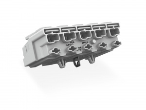 —294-5175 Соединитель для светильников; нажимная кнопка, внешняя; с прямым заземляющим контактом; 5-пол.; Стор. свет.: для одножильных проводников; Инст. стор.: для всех типов проводников; макс. 2,5 мм2; Темп. окруж. среды: макс. 85 °C (T85)