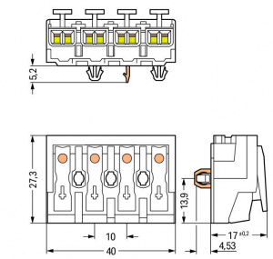 294-5124 Соединитель для светильников; нажимная кнопка, внешняя; с прямым заземляющим контактом; 1/L2-2/L-PE-N; 4-пол.; Стор. свет.: для одножильных проводников; Инст. стор.: для всех типов проводников; макс. 2,5 мм2; Темп. окруж. среды: макс. 85 °C (T85)
