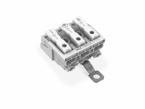 —294-5423 Соединитель для светильников; нажимная кнопка, внешняя; с винтовым заземляющим контактом; 3-пол.; Стор. свет.: для одножильных проводников; Инст. стор.: для всех типов проводников; макс. 2,5 мм2; Темп. окруж. среды: макс. 85 °C (T85)
