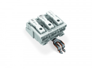 —294-5353 Соединитель для светильников; нажимная кнопка, внешняя; с защелкивающимся заземляющим контактом углового исполнения; 3-пол.; Стор. свет.: для одножильных проводников; Инст. стор.: для всех типов проводников; макс. 2,5 мм2; Темп. окруж. среды: мак