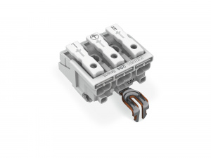 294-8213 Соединитель для светильников; нажимная кнопка, внешняя; для Linect; с защелкивающимся заземляющим контактом; 3-пол.; Код. A; Стор. свет.: для одножильных проводников; Инст. стор.: для всех типов проводников; макс. 2,5 мм2; Темп. окруж. среды: мак