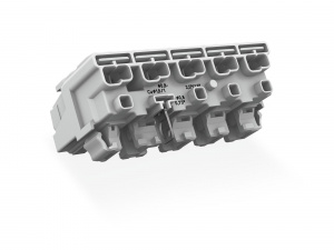 294-8125 Соединитель для светильников; нажимная кнопка, внешняя; для Linect; с прямым заземляющим контактом; L2 / N2 / L / PE / N; 5-пол.; Код. L; Стор. свет.: для одножильных проводников; Инст. стор.: для всех типов проводников; макс. 2,5 мм2; Темп. окру