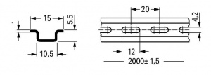 210-111 Стальная несущая рейка; 15 x 5,5 мм; толщиной 1 мм; длиной 2 м; перфорированная; в соответствии с EN 60715