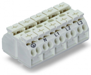 862-9625 ПОД ЗАПРОС 4-проводная клеммная колодка с монтажными штифтами; 5-пол.; PE-N-L1-L2-L3; с заземляющим контактом; 4 mm2