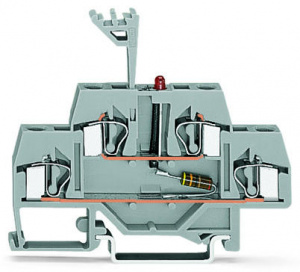 —281-634/281-413 Компонентная клемма; двухуровн.; красный светодиод; тока; для DIN-рейки 35 x 15 и 35 x 7,5; 4 mm2; CAGE CLAMP