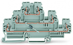 870-590/281-676 Компонентная клемма; трехуровн.; с диодом 1N4007; Анод, верхний; для DIN-рейки 35 x 15 и 35 x 7,5; 2,5 мм2; CAGE CLAMP