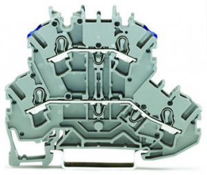 —2002-2203 Двухуровневые клеммы; Проходные / проходные клеммы; L/N; без нанесения маркировки; подходят для исполнений Ex e II; Синее отв. для ввода пров., верх. уров.; для DIN-рейки 35 x 15 и 35 x 7,5; 2,5 мм2; Push-in CAGE CLAMP