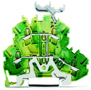 —2002-2237 Двухуровневые клеммы; 4-проводные клеммы с заземлением; PE; с нанесением маркировки; подходят для исполнений Ex e II; внутреннее объединение; для DIN-рейки 35 x 15 и 35 x 7,5; 2,5 мм2; Push-in CAGE CLAMP