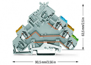 —280-572 3-проводные клеммы для подключения исполнительных устройств; с заземляющим контактом; с цветн. отверст. для ввода проводников; 2,5 мм2; CAGE CLAMP