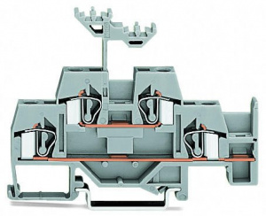 —281-620 Двухуровневые клеммы; Проходные / проходные клеммы; с дополнительной позицией для перемычки на нижнем уровне; для DIN-рейки 35 x 15 и 35 x 7,5; 4 mm2; CAGE CLAMP