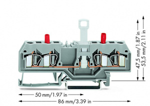 —281-666 4-проводные клеммы с размыкателем / тестовые клеммы; с защищенными от случайных прикосновений тестовыми разъемами; для DIN-рейки 35 x 15 и 35 x 7,5; 4 mm2; CAGE CLAMP