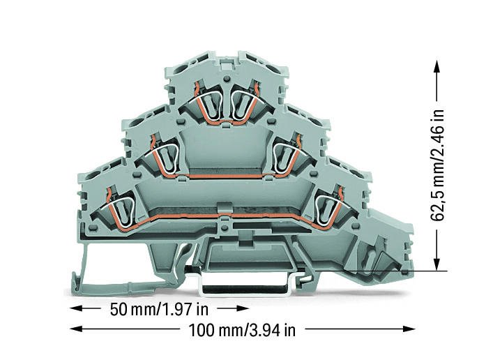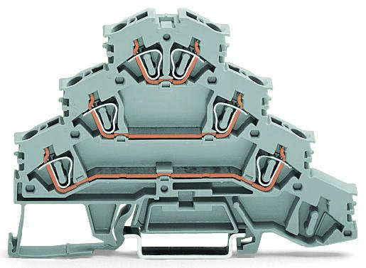 —281-532 Четырехуровневые монтируемые на рейку клеммы; Монтируемые на рейку клеммы для подключения электродвигателей; L1 - L2 - L3; для DIN-рейки 35 x 15 и 35 x 7,5; 4 mm2; CAGE CLAMP