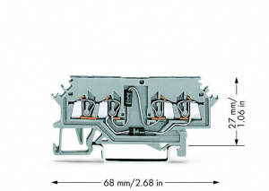 279-620/281-408 Компонентная клемма; 4-проводн.; для исп. цепей индикаторных ламп до 60 В; с 2 диодами 1N4007; Правый анод; для DIN-рейки 35 x 15 и 35 x 7,5; 1,5; CAGE CLAMP