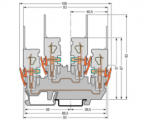 870-151 2-проводные / 2-контактные двухуровневые базовые клеммы; Проходные / проходные клеммы; L/L; для DIN-рейки 35 x 15 и 35 x 7,5; 2,5 мм2; CAGE CLAMP