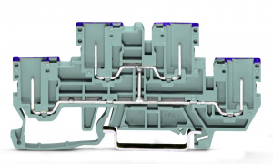 870-158 4-проводные двухуровневые базовые клеммы; 4-контактные проходные клеммы; L:; внутреннее объединение; ввод для проводника розетки отмечен фиолетовым; для DIN-рейки 35 x 15 и 35 x 7,5