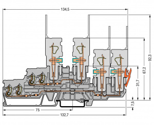 —870-131 2-проводные / 2-контактные двухуровневые базовые клеммы; Проходные / проходные клеммы; L/L; для DIN-рейки 35 x 15 и 35 x 7,5; 2,5 мм2; CAGE CLAMP