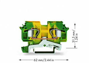 —282-607/999-950 2-проводные клеммы с заземлением; 3; подходят для исполнений Ex e II; боковые маркировочные разъемы; для DIN-рейки 35 x 15 и 35 x 7,5; CAGE CLAMP