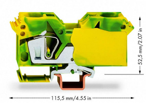 —285-607/999-950 2-проводные клеммы с заземлением; 25 мм2; подходят для исполнений Ex e II; боковые маркировочные разъемы; только на рейке DIN 35 x 15; толщиной 2,3 мм; медь; CAGE CLAMP