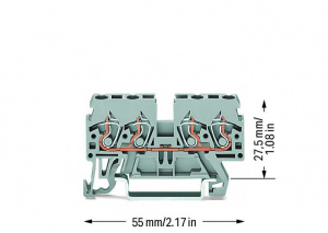 870-831 4-проводные проходные клеммы; 2,5 мм2; боковая и центральная маркировка; для DIN-рейки 35 x 15 и 35 x 7,5; CAGE CLAMP