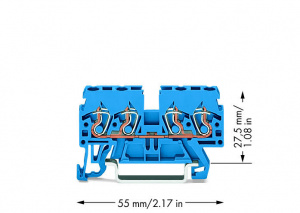 —870-834 4-проводные проходные клеммы; 2,5 мм2; подходят для исполнений Ex i; боковая и центральная маркировка; для DIN-рейки 35 x 15 и 35 x 7,5; CAGE CLAMP