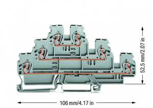 —870-551 Трехуровневые клеммы; Проходные / проходные / проходные клеммы; L/L/L; для DIN-рейки 35 x 15 и 35 x 7,5; 2,5 мм2; CAGE CLAMP